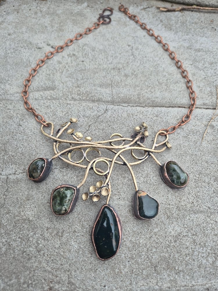Dark green jasper and bullet cussings necklace$140.00 / Sold Out -