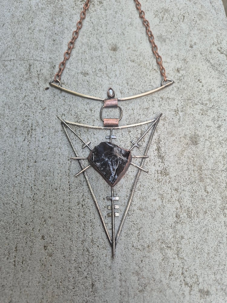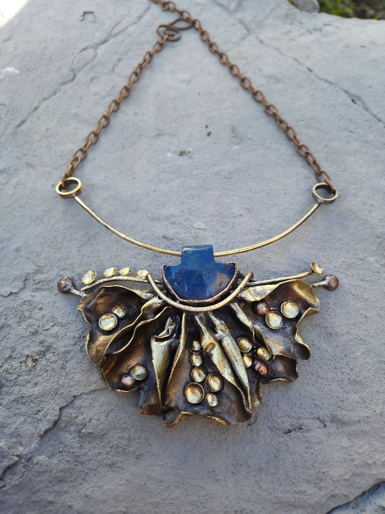 Ammonite and bullet casings necklace$140.00 / Sold Out