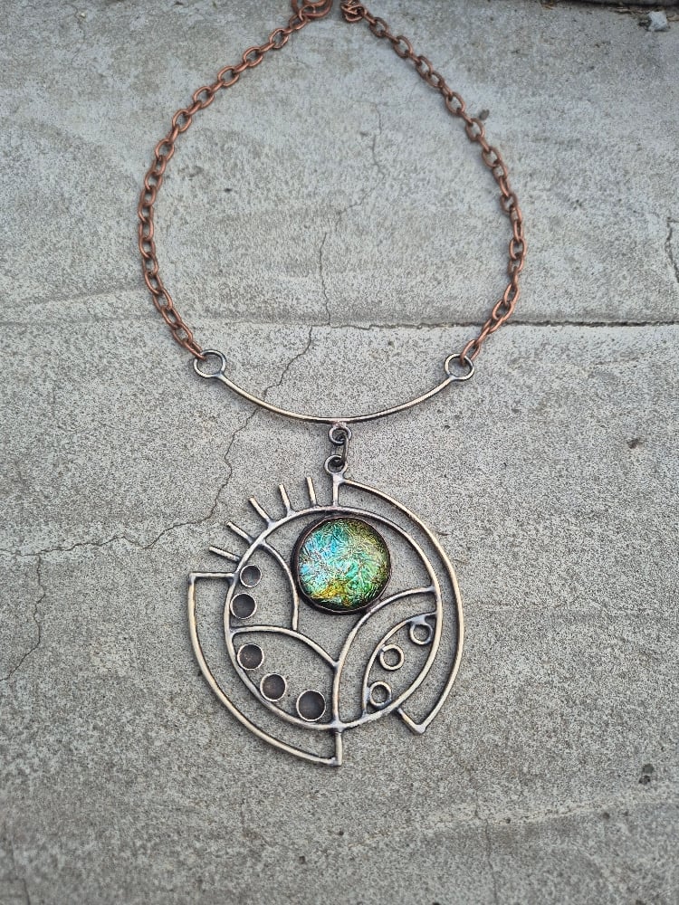 Copper bracelet with trees, houses, cat and star$180.00 / Sold Out