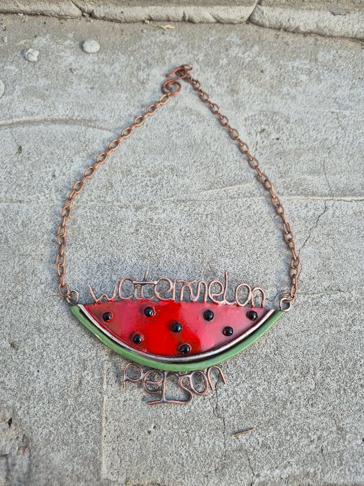 Green, orange and yellow flowers necklace$160.00 / Sold Out