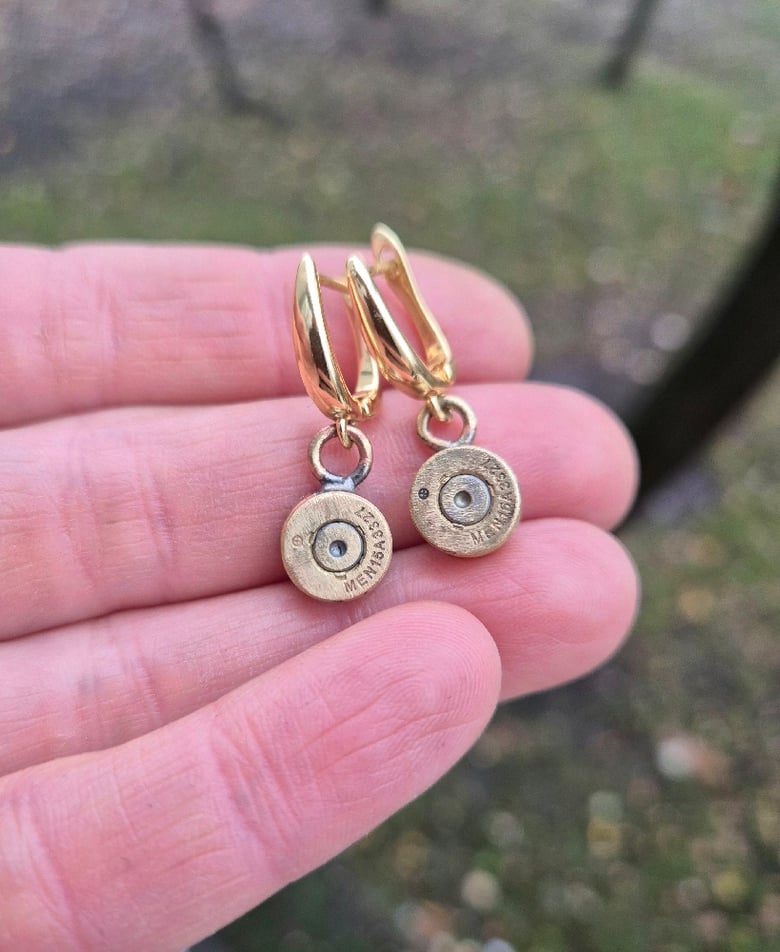Bullet casings yellow earrings$75.00 / Sold Out -