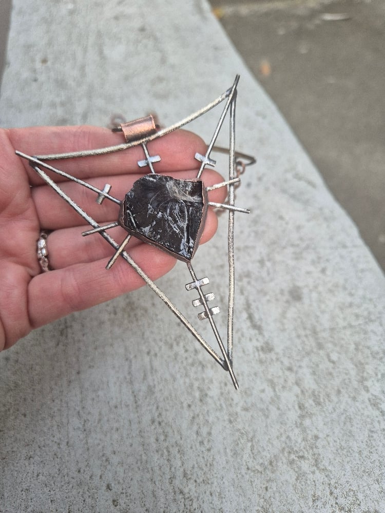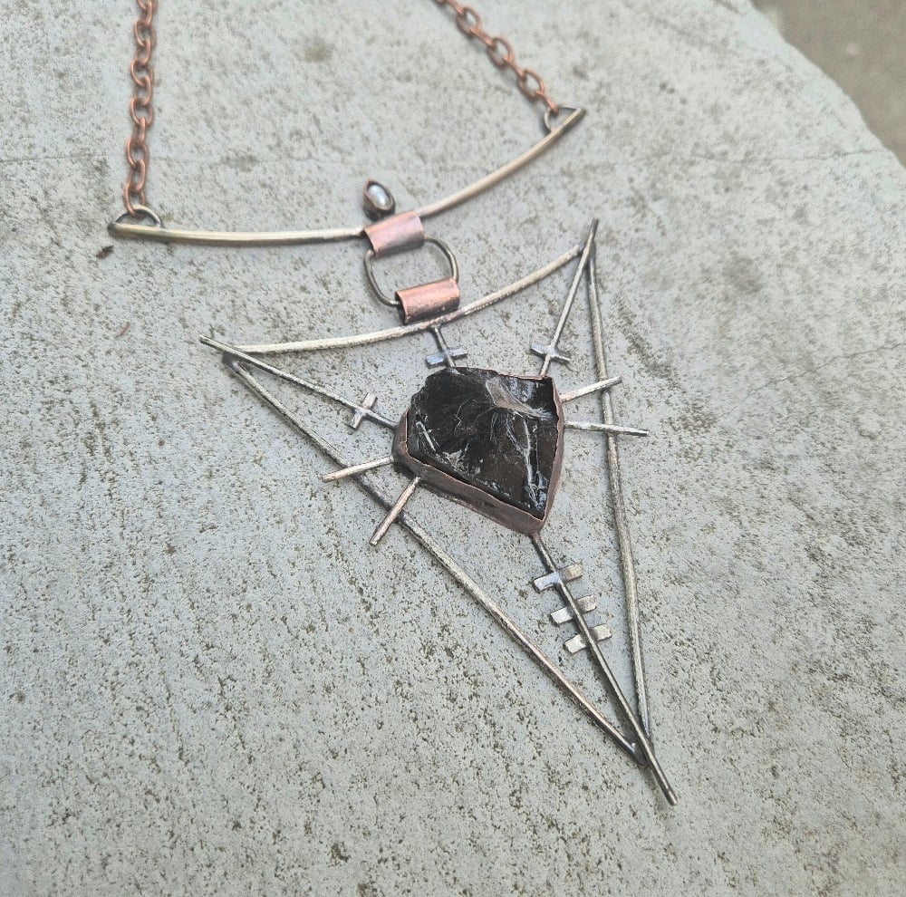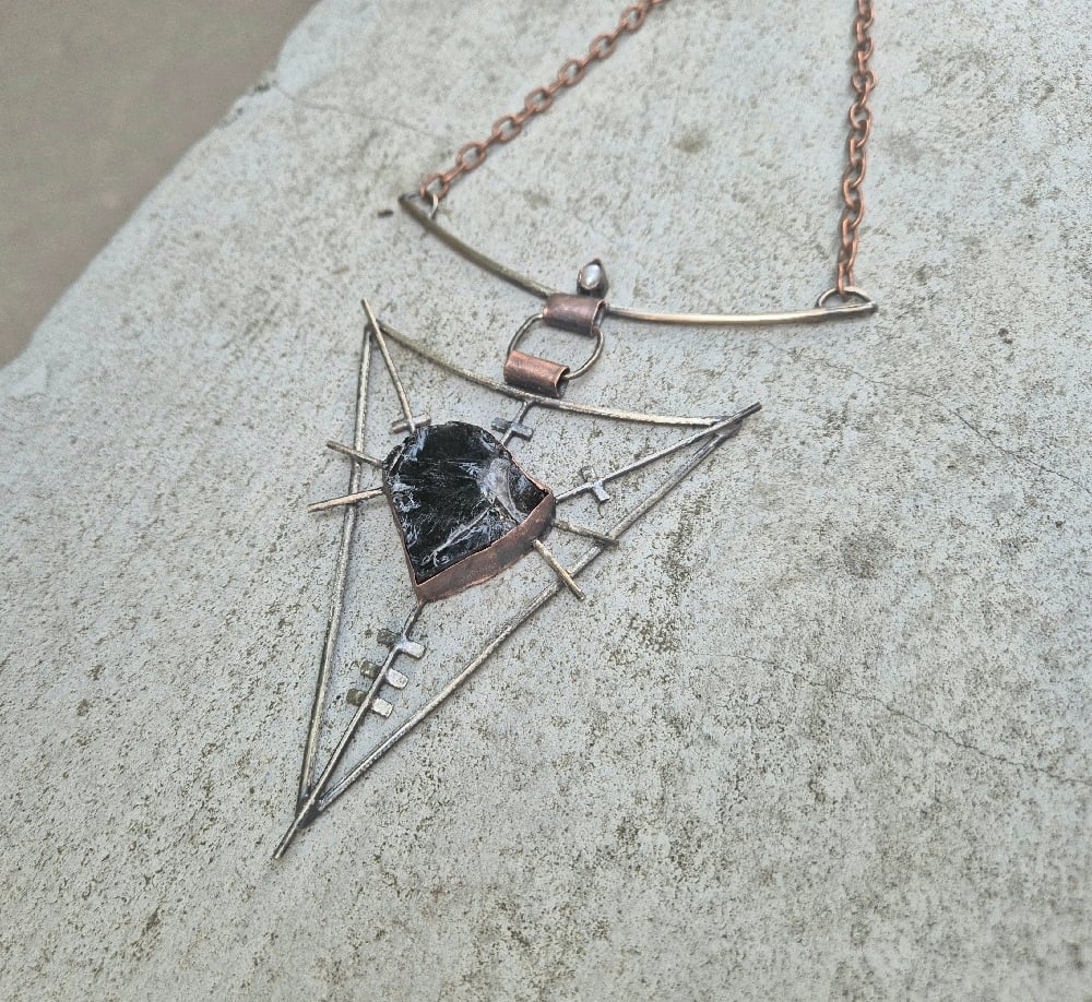 I made this necklace of copper, german silver, rauchtopaz and pearl