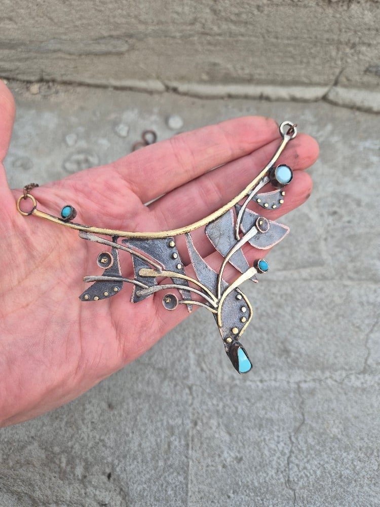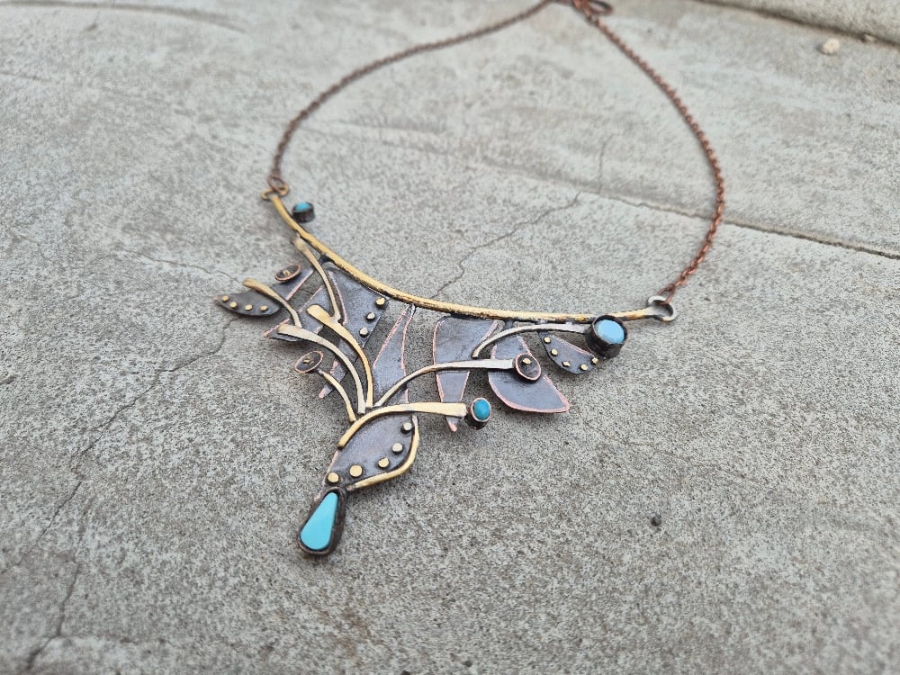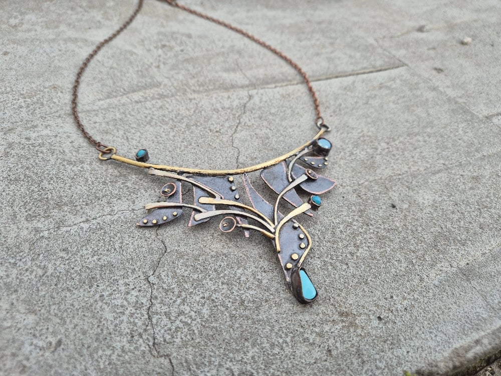 I made this necklace of copper, german silver, brass, natural stone and glass beads