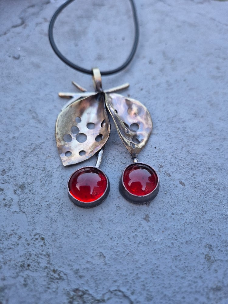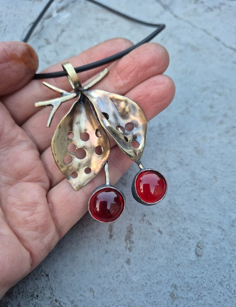 I made this pendant of copper, brass, bullet casings and glass cabochons