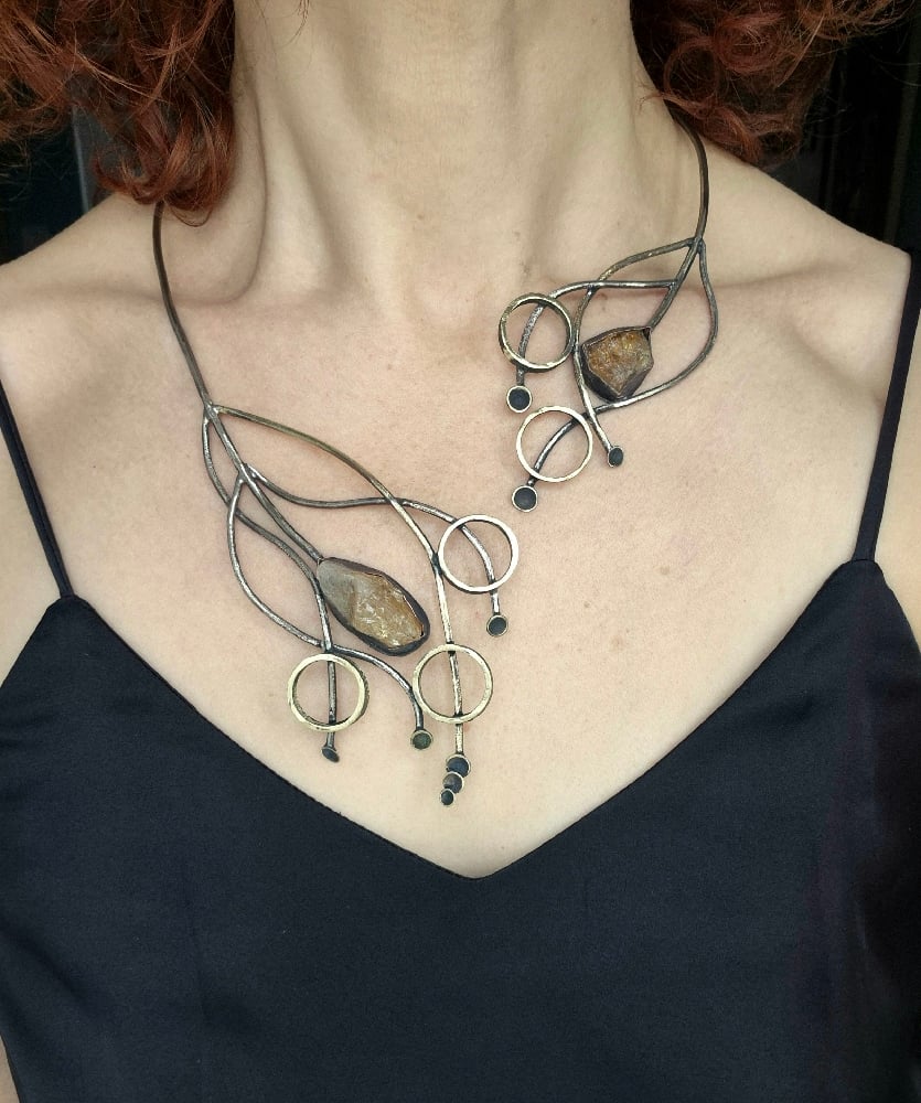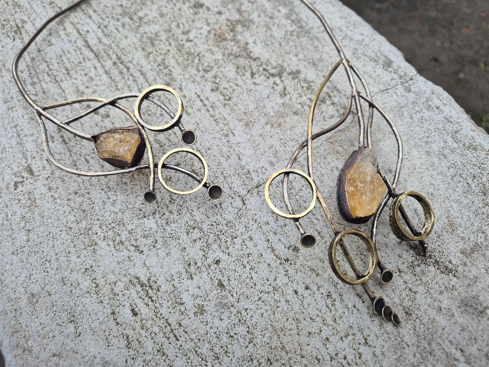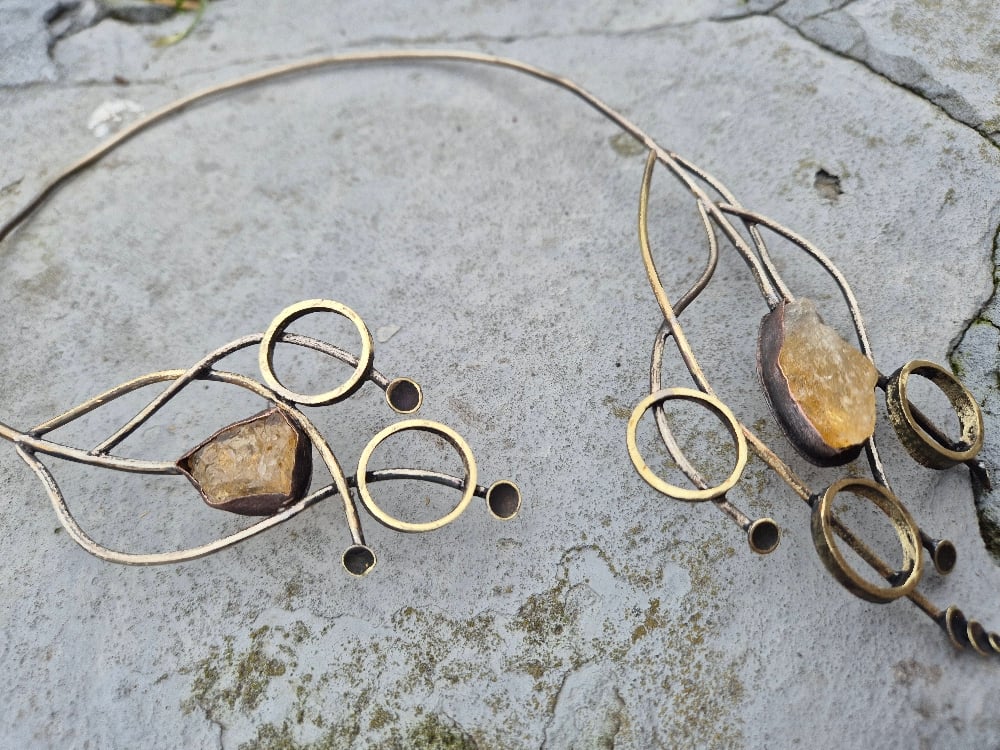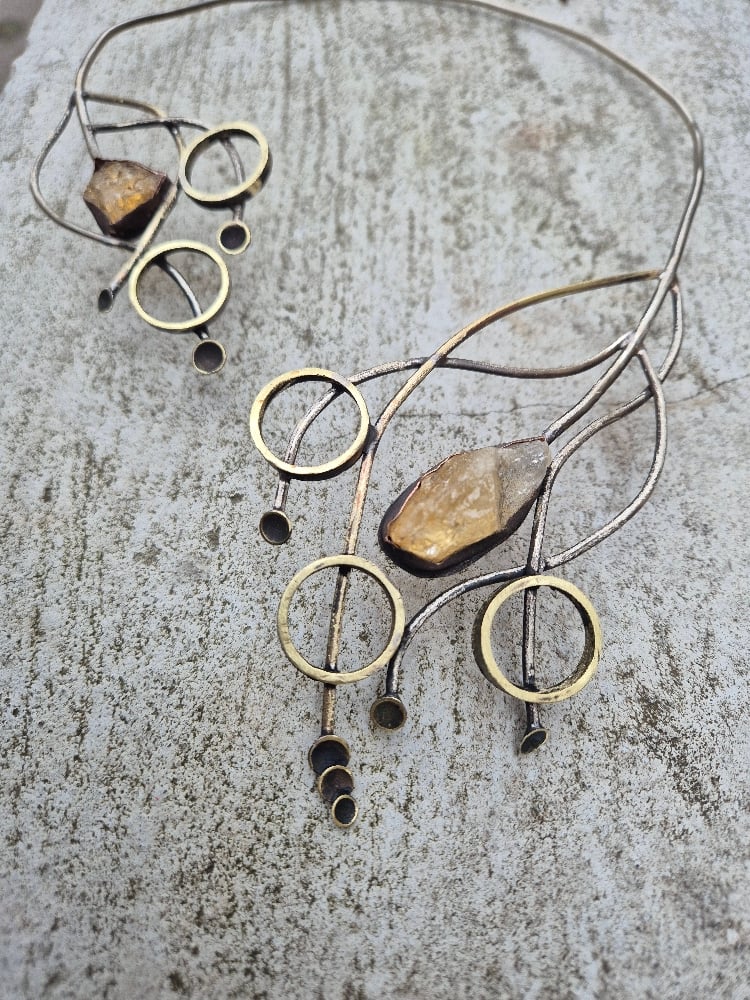 I made this necklace of copper, german silver, brass, bullet casings and citrine
