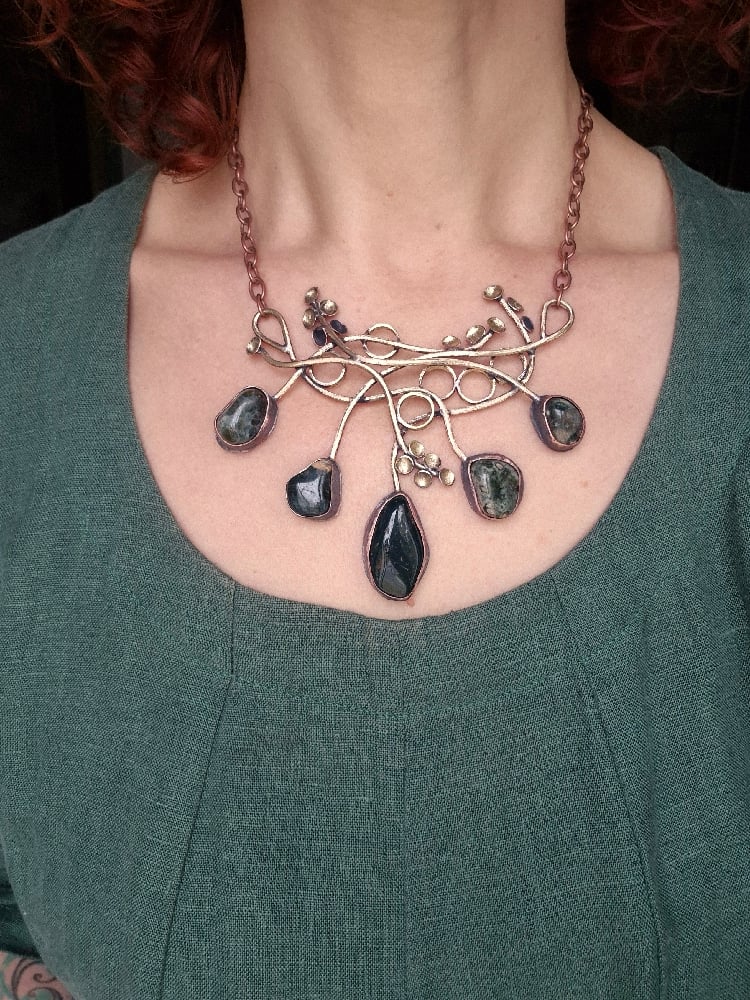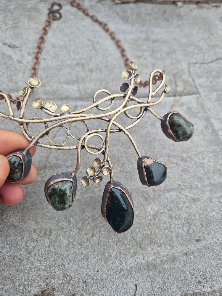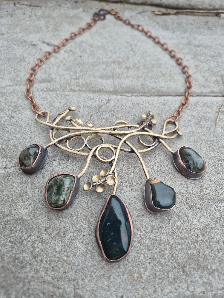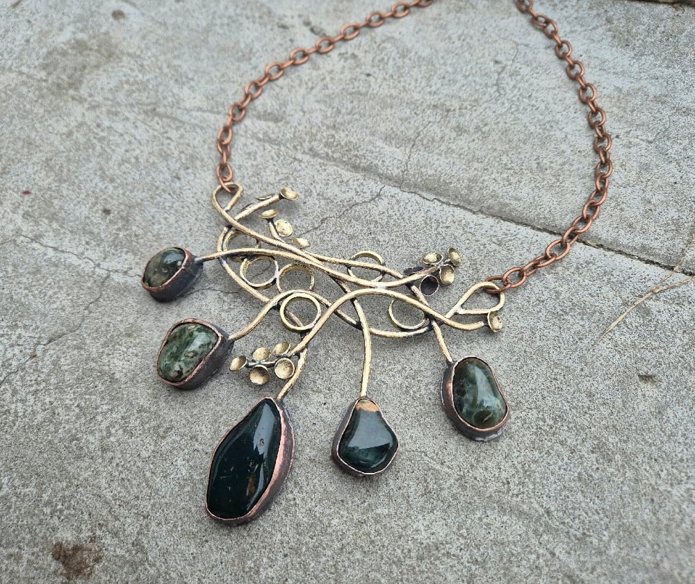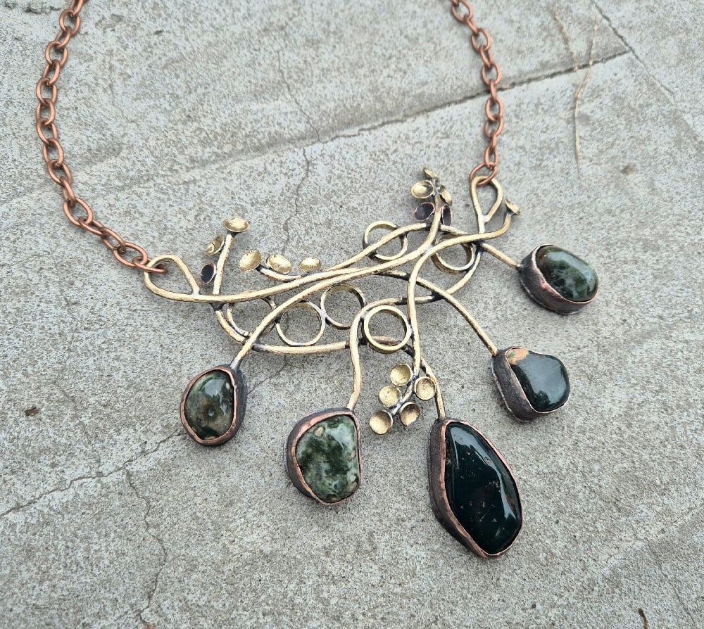 Dark green jasper and bullet cussings necklace